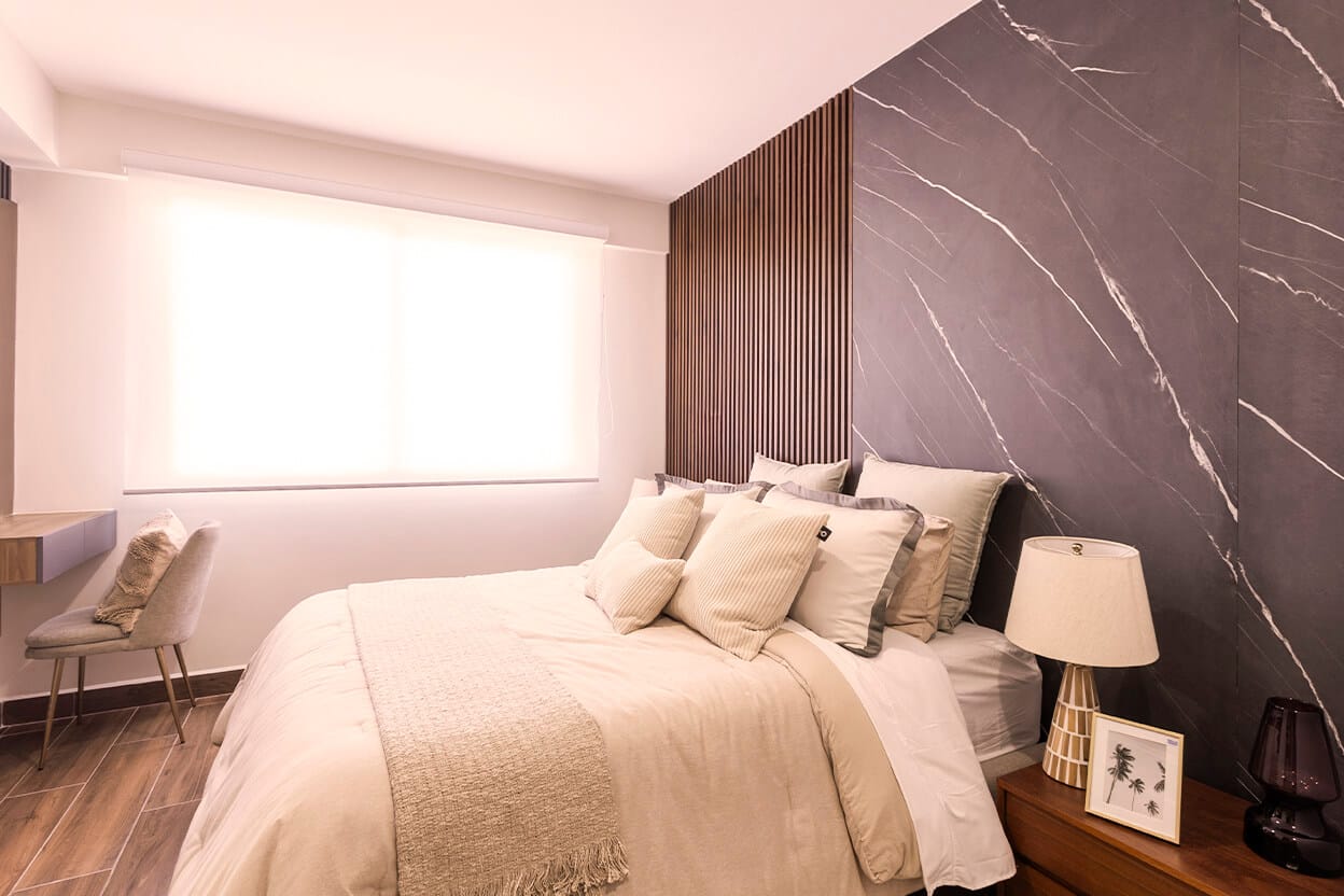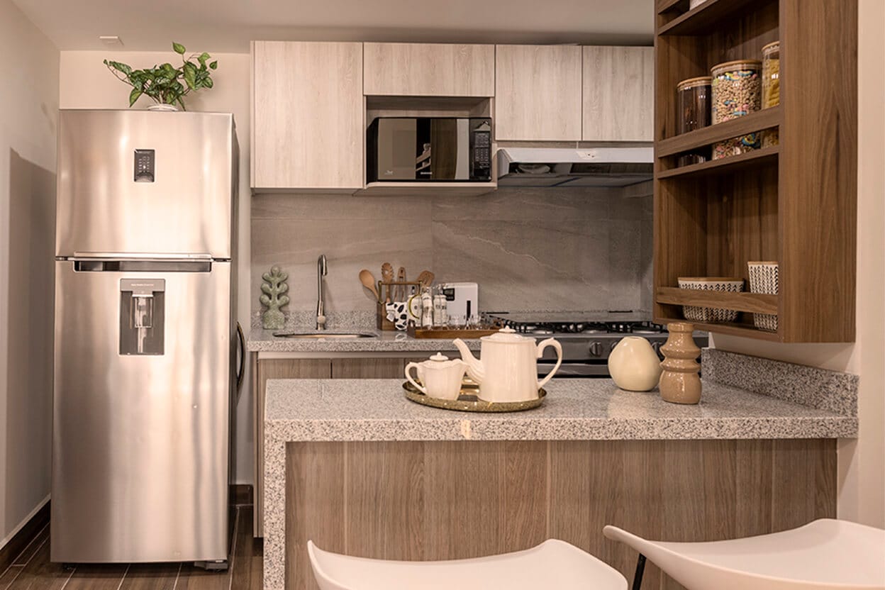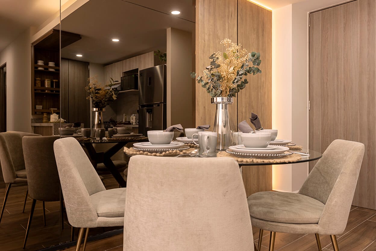 El interior de cada departamento está enfocado en funcionalidad real: espacios bien distribuidos, iluminación natural y materiales pensados para el uso diario. Aquí no se trata solo de estética, sino de crear espacios cómodos, durables y atractivos tanto para quien vive como para quien invierte. Agenda cita para conocer departamento muestra.