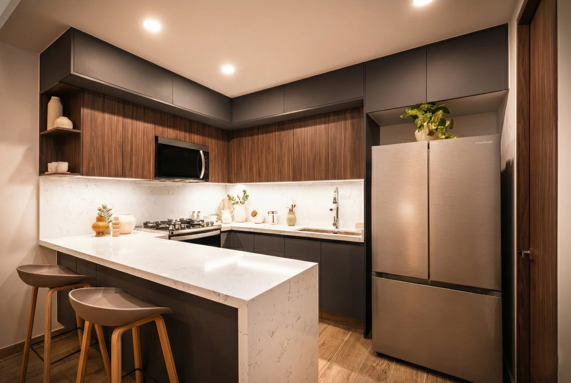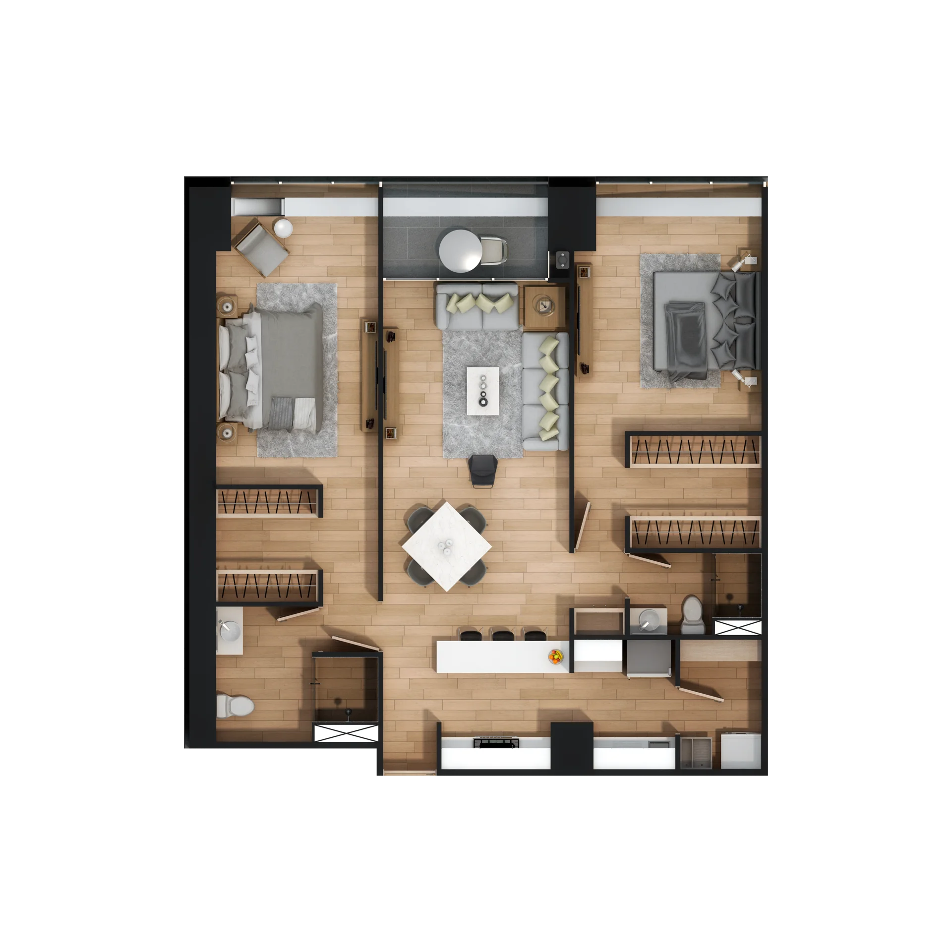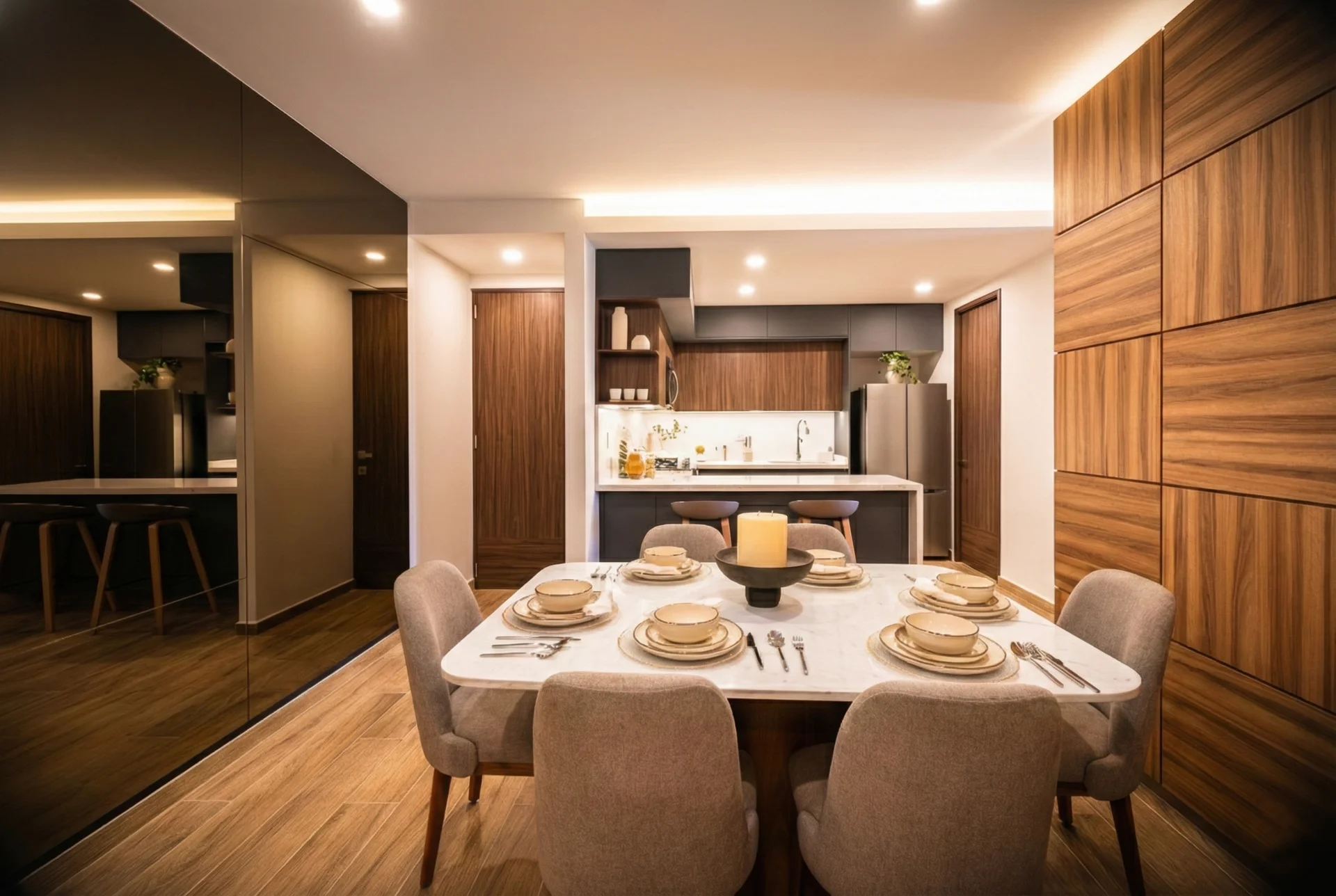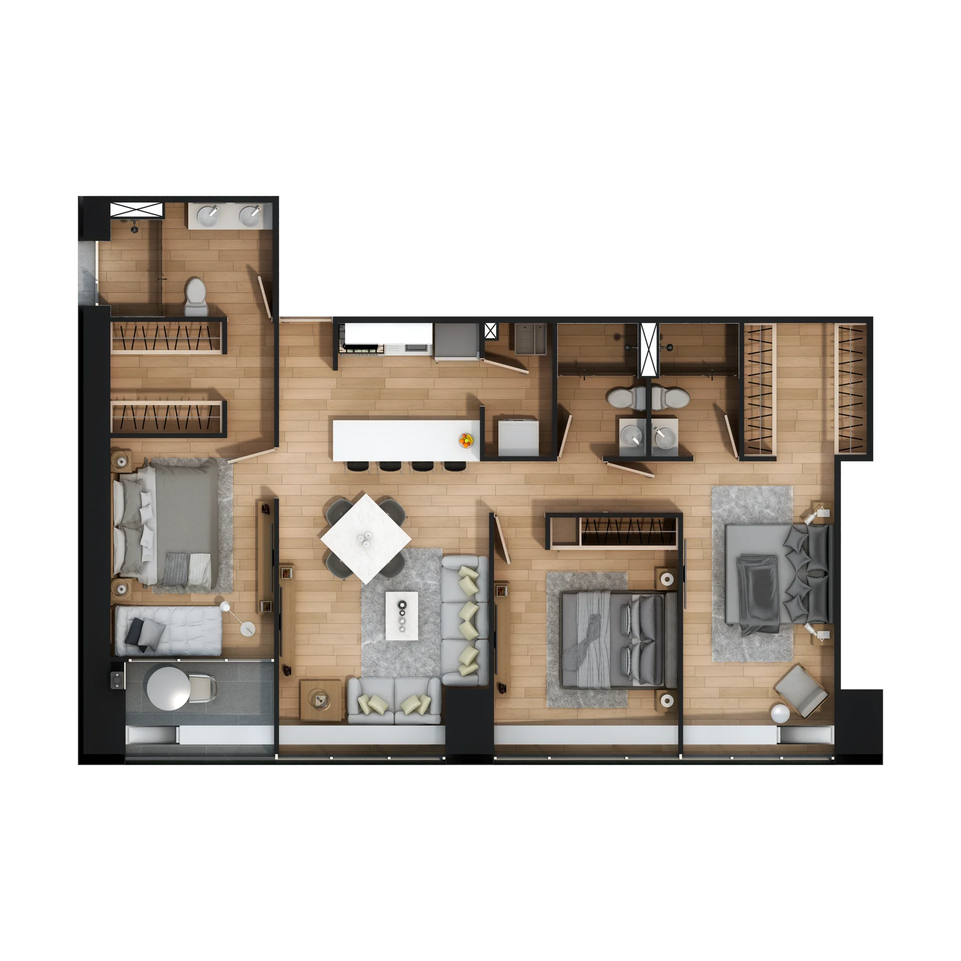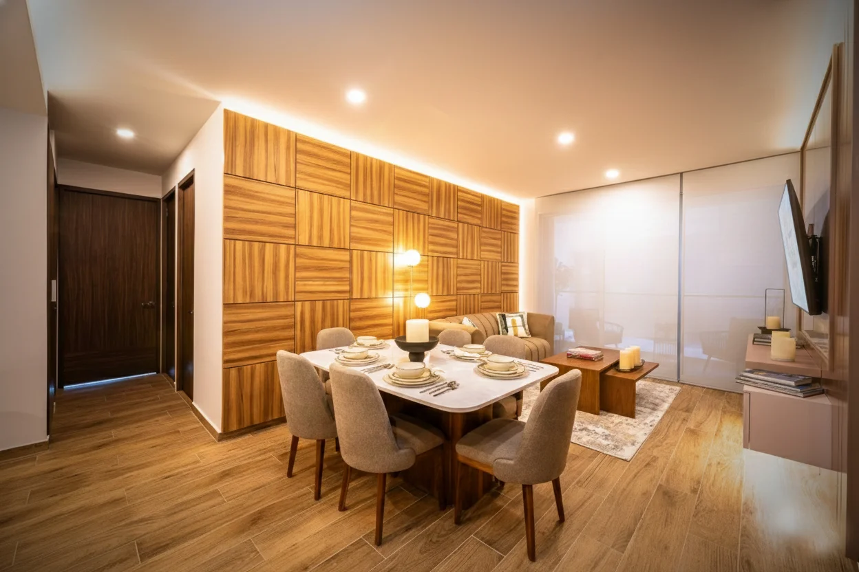 El interior de cada departamento refleja una filosofía clara: menos artificio, más propósito. Desde los acabados hasta la distribución, todo está pensado para ofrecer bienestar, fluidez y durabilidad. Materiales de alta calidad, luz natural y un diseño contemporáneo hacen de cada espacio un lugar para disfrutar todos los días, no solo admirar.