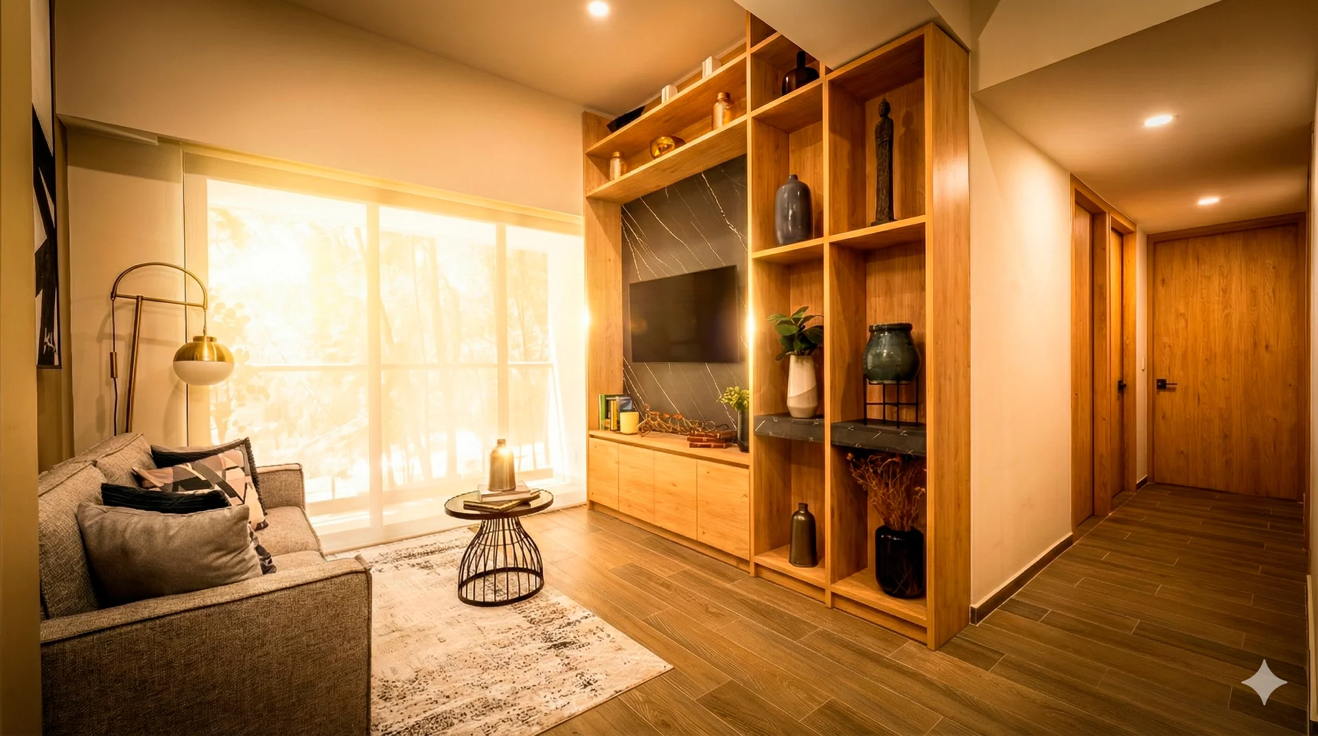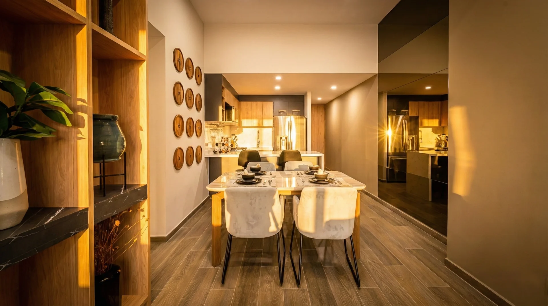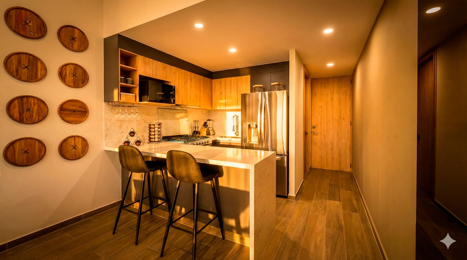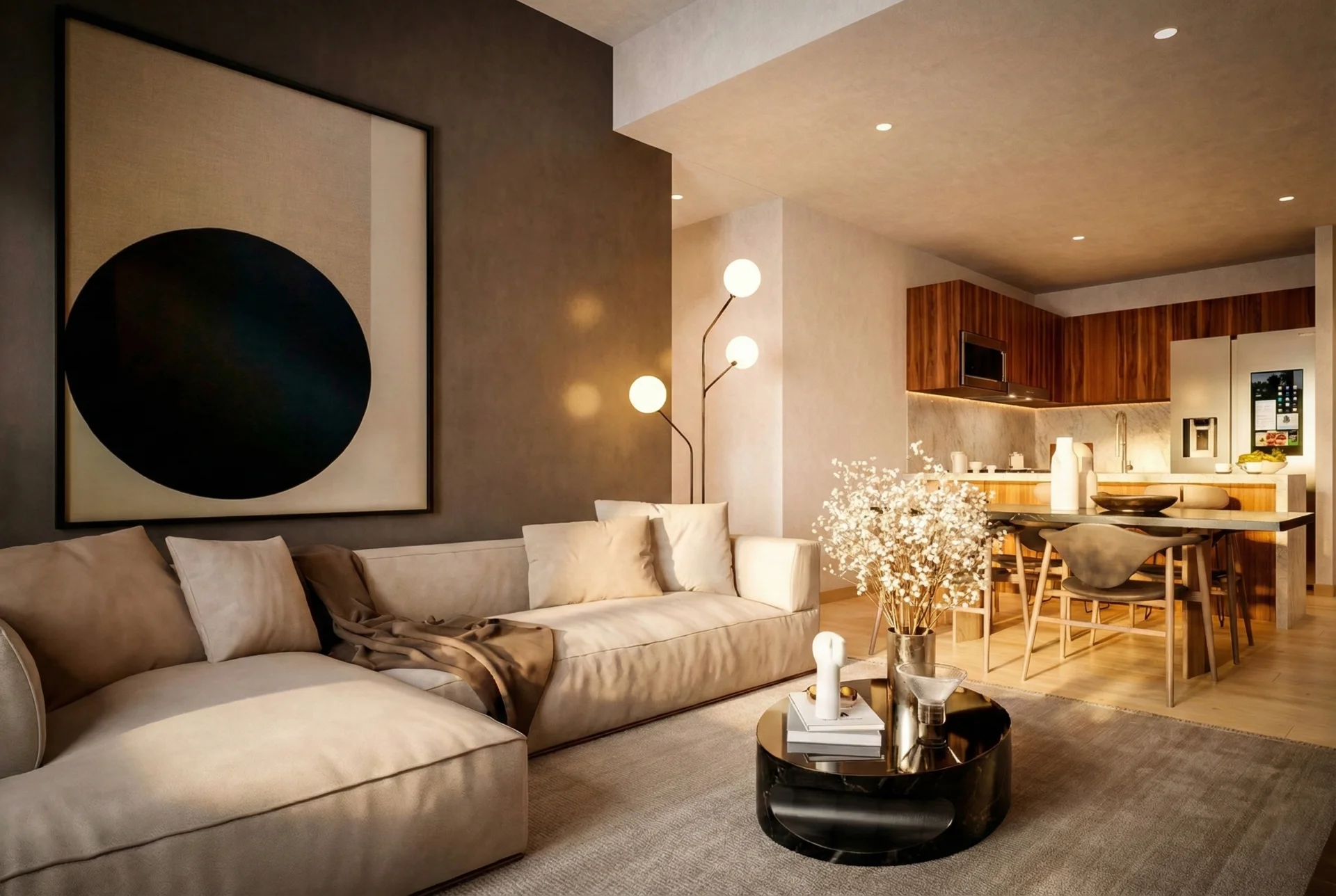 Los interiores de Agatha Monolith fueron concebidos para mantener la conexión con lo exterior. Materiales naturales, acabados sobrios y elegantes, y una atmósfera serena definen cada espacio. Un diseño que no busca destacar, sino integrarse a tu vida y al entorno que lo rodea.