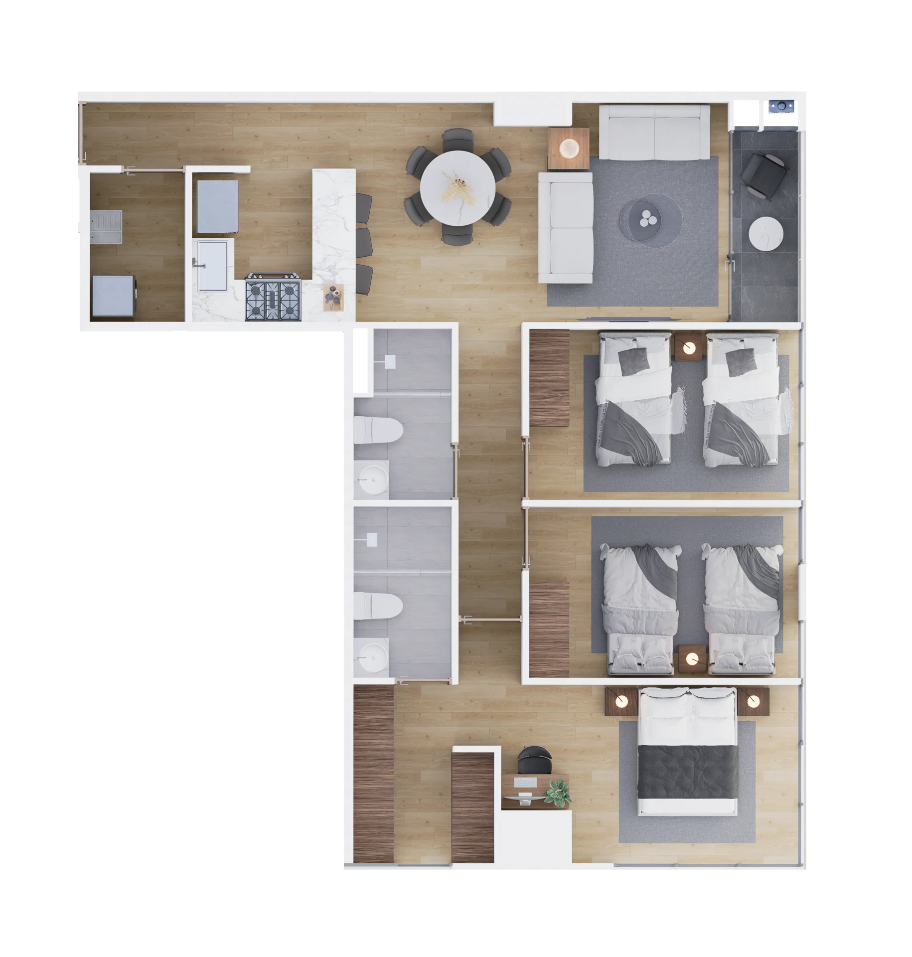 En Monolith, el espacio es más que metros: es armonía y conexión con el entorno. Cada departamento fue diseñado para aprovechar la luz natural, las vistas verdes y la distribución funcional que brinda libertad en cada rincón. Un hogar para quienes buscan tranquilidad, sin alejarse del pulso de la ciudad.